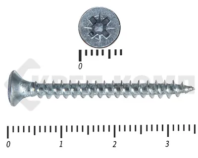 - Pz («Позидрив») – у желтых и белых универсальных саморезов. Размер шлица (№1, №2 или №3) зависит от диаметра головки. Чем больше размер крепежа – тем больше шлиц под крестовую отвертку или биту-насадку для шуруповерта;