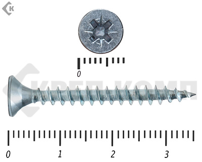 - Pz («Позидрив») – у желтых и белых универсальных саморезов. Размер шлица (№1, №2 или №3) зависит от диаметра головки. Чем больше размер крепежа – тем больше шлиц под крестовую отвертку или биту-насадку для шуруповерта;