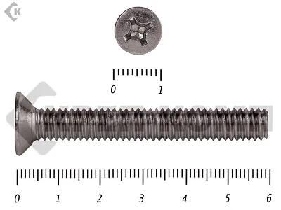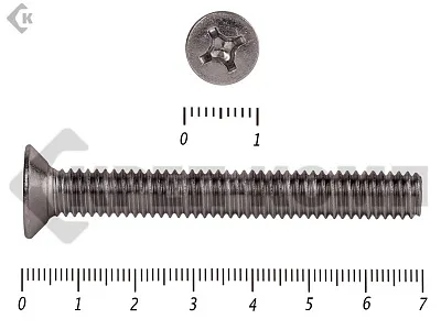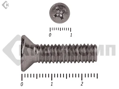 Винт DIN 965 из нержавейки с потайной головкой с крестообразным шлицем и полной резьбой. Данные винты выполнены из нержавеющей стали, благодаря чему, могут использоваться и в агрессивных средах, с повышенной влажностью. Винты нержавеющие DIN 965 используются в строительстве, машиностроении, промышленных и производственных отраслях совместно с шайбами, гайками соответствующих размеров.